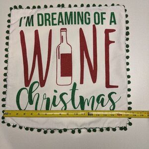 Pillow cover, (1), off white green red, sparkle, green pompom trim