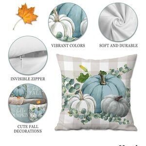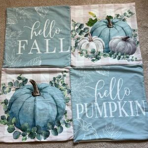 Pillow covers -Fall Decorative 18”x18” Set of 4- teal and grey pumpkin. EUC