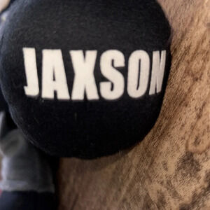 Like new , wasn’t played with from personalize creations was on the bed . Jaxson is on the foot personalized .
