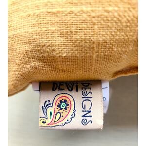 Nice medium size throw pillow. It is a gold color and made of cotton. It is plain except the word "Home" embossed in the same color as the pillow in script on one side. The other side is plain. There is no zipper or other type of opening. It measures approximately 17" x 12". Nice pillow to decorate your "home".