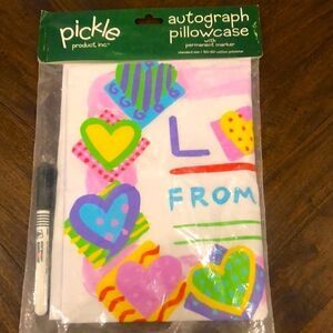“Love from camp” pillowcase. Either you can write love notes for your kid while they’re away, or their friends can sign for a keepsake! New never been opened