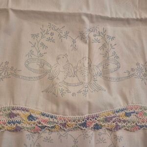 Pillowcases (2) White Cotton, Vintage, Crocheted Edge and Iron on Design that ne