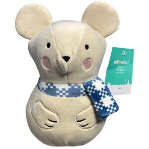 This adorable Pillowfort plush toy features a cute mouse design complete with a blue checkered scarf. Its soft and cuddly texture makes it a delightful companion for children or a charming decorative piece for a nursery.