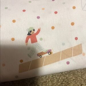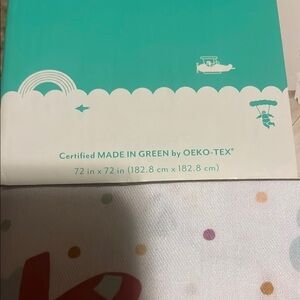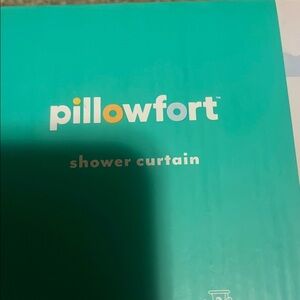 Charming Pillowfort shower curtain. Features playful red airplane and yellow balloon. Adds fun to any bathroom.