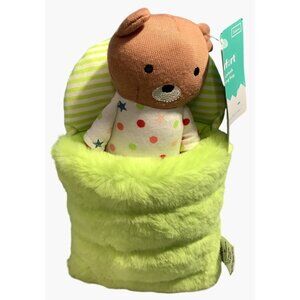 Pillowfort Teddy Bear Plush Toy With Lime Green Sleeping Bag