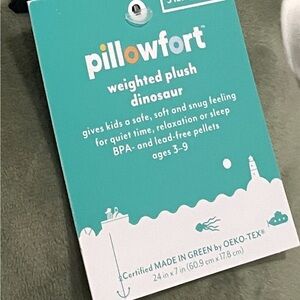 Brand-new, unused. Adorable green weighted plush triceratops dinosaur. Ideal for snuggles. BPA free/lead free.