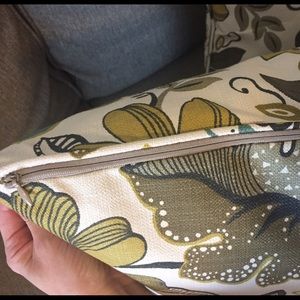 2 decorative pillows. Pillows with soft feather inserts; zippered access. Polyester upholstery; cotton and polyester/cotton pillows. Brand new from Ashley Furniture/never used. ($35 each when purchased, asking $20 for both) Open to offers.