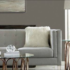 Two Shaggy white faux fur pillows.