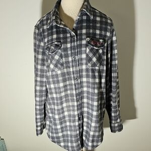 Pilote & Filles Gray & White Plaid Button-Up Shirt/ Fleese. XL
