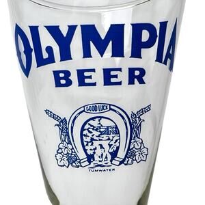 Pilsner Glasses Lot 2 Olympia Clear Beer Blue Letters Good Luck Tumwater 8.25 In