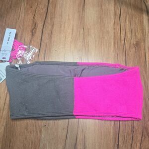 PilyQ Acai Reef Bikini Pink Gray Bandeau Top Size D Bottoms Size Small Swimwear