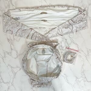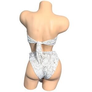 PilyQ Color Block Bandeau (D) and High Waist Cheeky Bikini Bottom (M) in Cobra