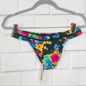 PilyQ Floral Black Net Trim Bikini Bottom Small