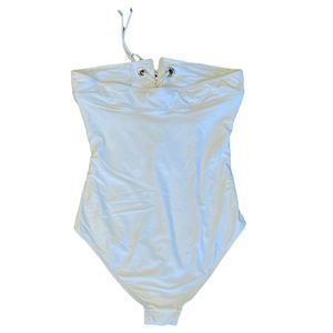 PilyQ Inca Swimsuit White Pearl Corset Detail Strapless One Piece Sz Small