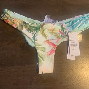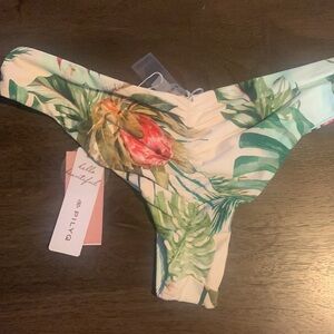 Reversible Basic Ruched Teeny Bottom. The low rise hipster bottom features a flattering ruched rear with a teeny, brazilian rear coverage in a gorgeous tropical print fabric. Fully lined.