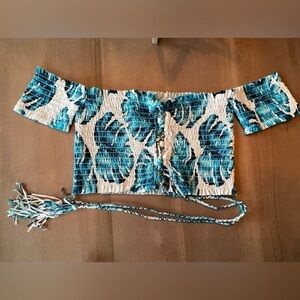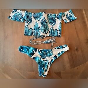 PilyQ Wailea Smocked Off-Shoulder Top and Basic Ruched Bottom Bikini Size S/M