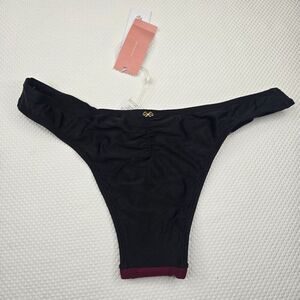 PilyQ Womens M Tiny Scrunch Bikini Bottom Black Maroon Swimwear MSRP $68 New