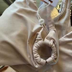 PilyQ metallic shine cream side rings bikini bralette top sz S