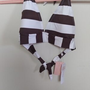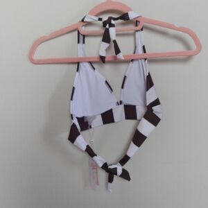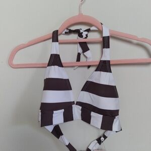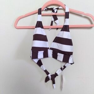 Pilyq Godiva Brown and White Striped Triangle Halter Bikini Top Size Medium