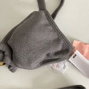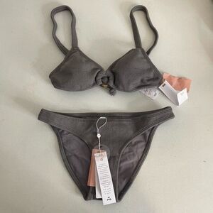 Pilyq Gray Sand Reef Ring Triangle Top/Full Bottoms Bikini Set Size Small