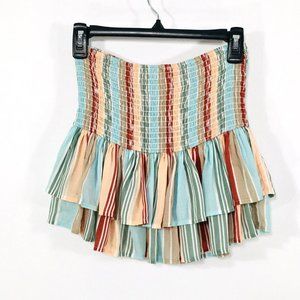 Pilyq Womens Sz XS Multicolor Adventure Stripe Smocked Cover Up Mini Skirt + Top