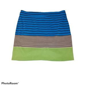 Great condition , beautiful colors , size large , blue , white , green and black in color with stripes .