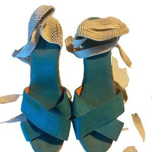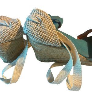 Pima 2 made in Spain blue and white ankle wrap espadrille sandals size 10.5