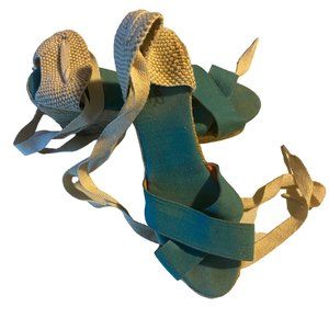 Very nice condition Pima 2 blue ankle wrap sandals slight toe marks due to normal wear see photos