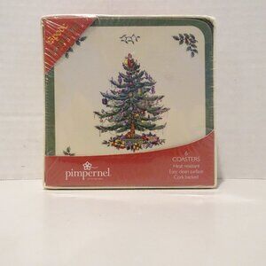 Pimpernel Christmas Tree Collection Cork-Backed Coasters 4" Set of 6 NEW Spode