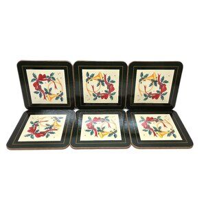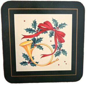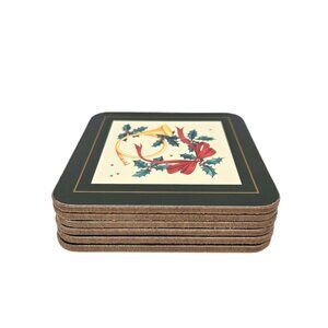 Pimpernel Cork Coaster Set x6 Christmas Holly Horn Ribbon Celebration Yuletide