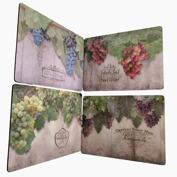 Enhance your dining experience with these vineyard-themed placemats. Crafted by Pimpernel, featuring exquisite grape designs and durable cork backing. Each placemat is different.