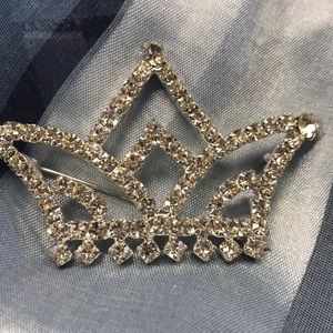 Gorgeous rhinestone crown pin . Approximate 3 in at the widest point.