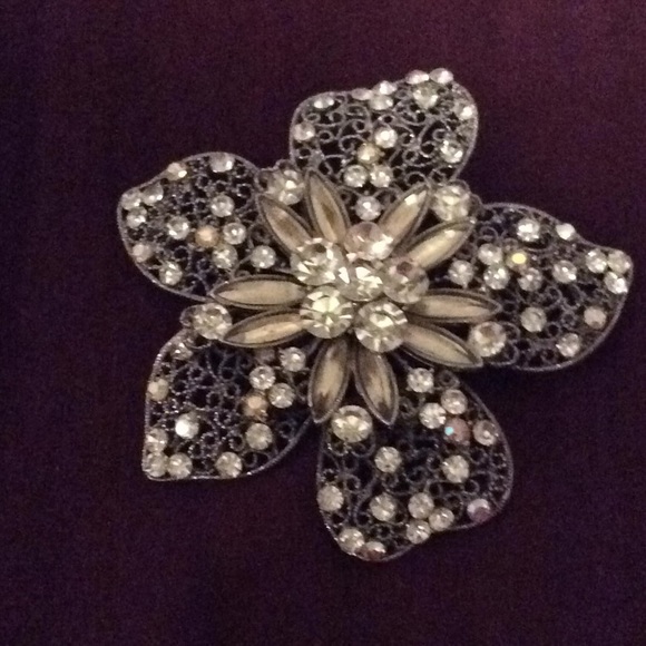 Silver floral pin with stones