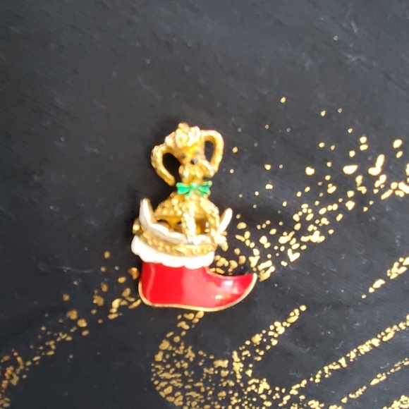 Vintage Christmas poodle pin. 2" high.
