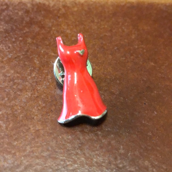 Red dress with sliver heart pin
