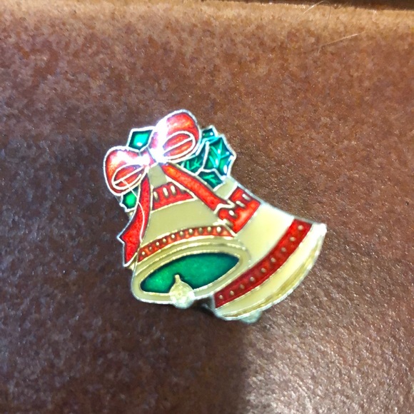 Golden Christmas bells with red ribbon