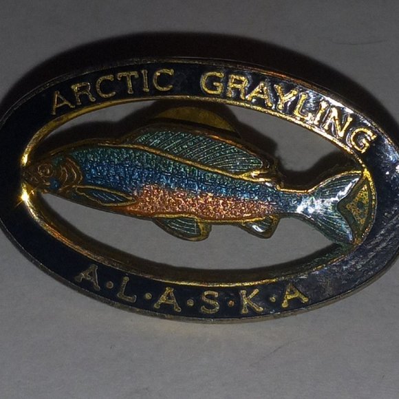 Alaska Pin - Colorful Arctic Grayling in center of pin measures 7/8 inch tall