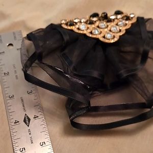 Fancy Black and Gold Pin with Rhinestones and Black Beads