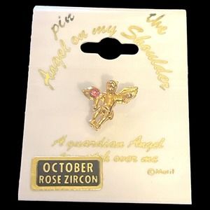 Pin Guardian Angel “Angel on my Shoulder” PIN Gold Tone October Rose Zircon