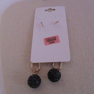 Pin Hook Earrings Black Pave Balls GOLDTONE Free Gift Box