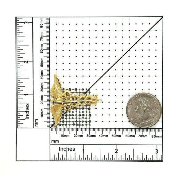 A gold-toned lapel pin featuring the Caduceus symbol, often associated with medicine and healthcare. Ideal for medical professionals or enthusiasts.