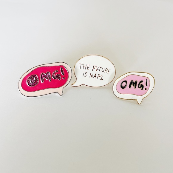 Set of 3 speech bubble themed enamel lapel pins!