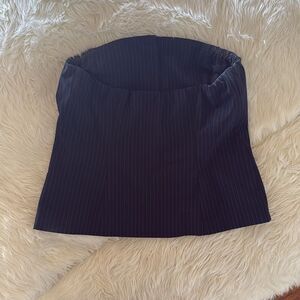 Navy pin striped button up strapless vest top
