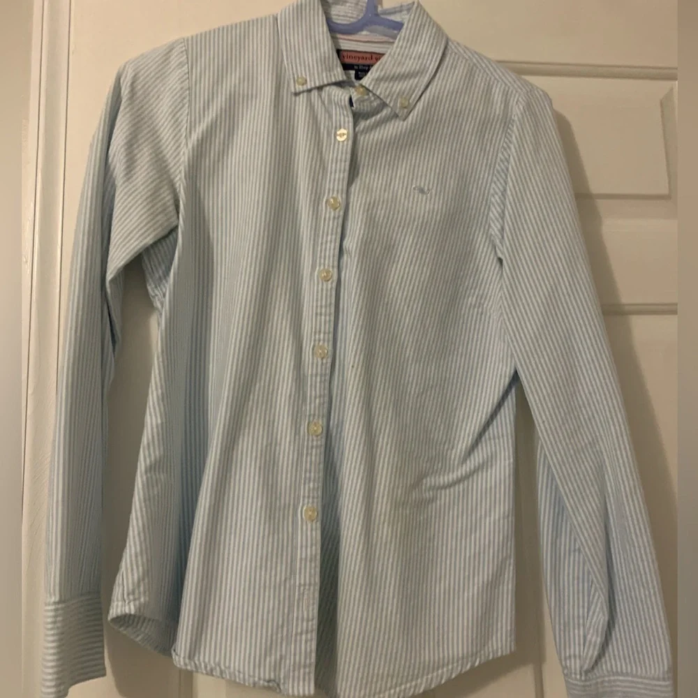 Vineyard vines women’s size two button down. One minor spot shown in last picture. I haven’t attempted to remove spot.