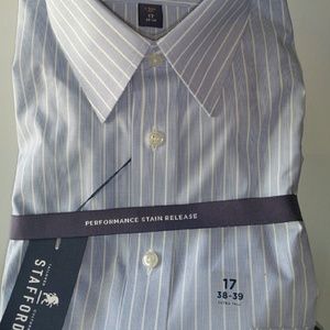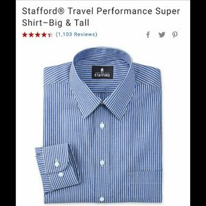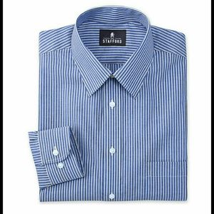 Blue and white pin stripped tailored culture STAFFORD long sleeve shirt travel performance super shirt with performance stain release extra tall fit 17 38-39