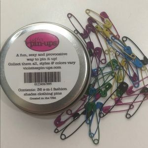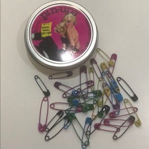 Multi colored safety pins in fashion shades and 3 different sizes. 5 tins are in this collection.