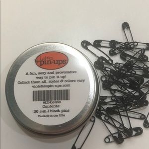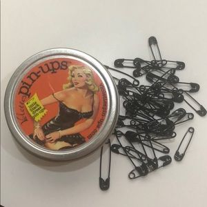 Black safety pins in 3 sizes.