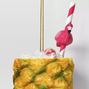 Pina Colada Pineapple Cocktail Flamingo Ornament ~ Christmas Wondershop * NEW