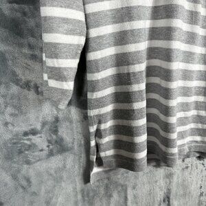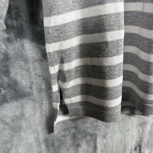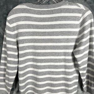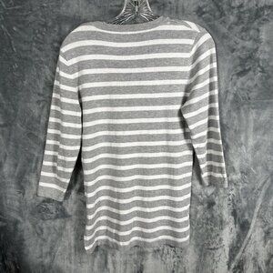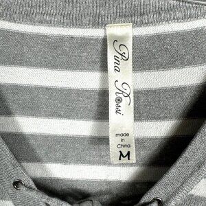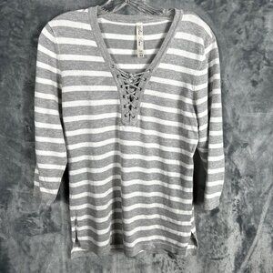 Pina Rossi Woman’s Top Gray And White Striped Lace Upfront Side Slits Medium