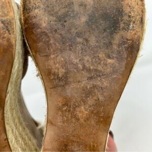 Pinaz Made in Spain Beige Gray Leather Espadrille Wedges Size 39 (US Size 8.5 to 9)